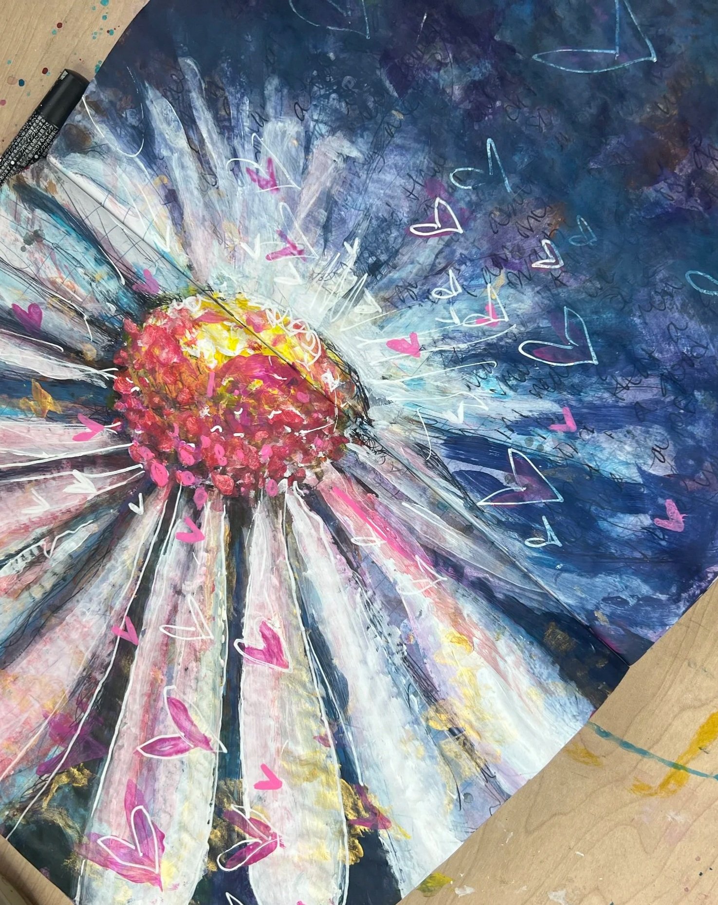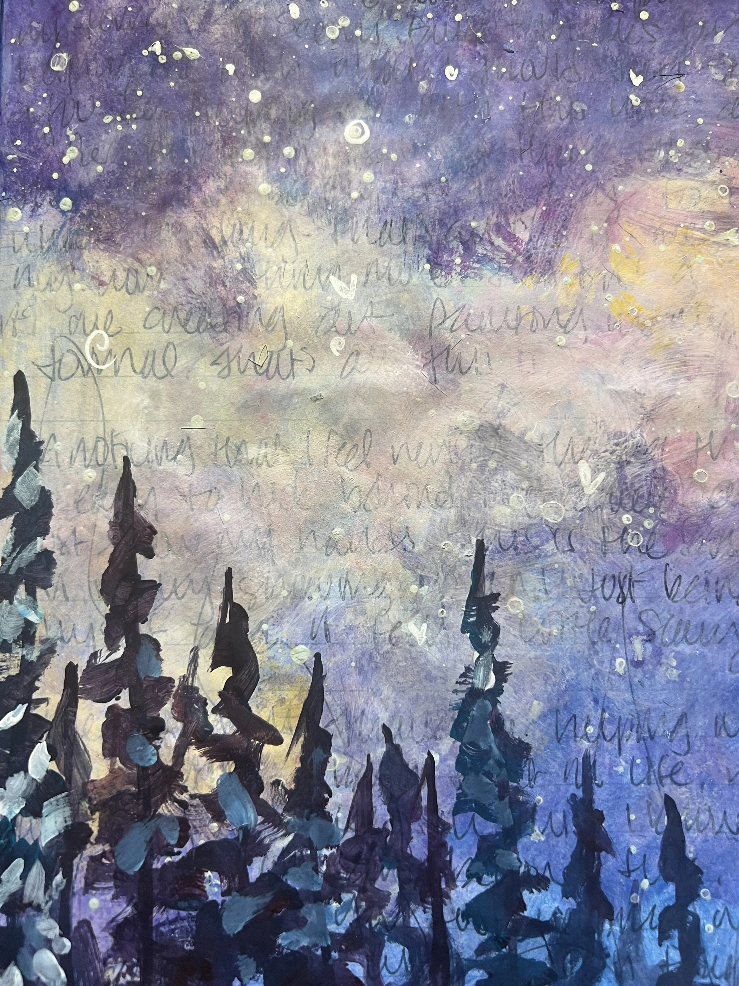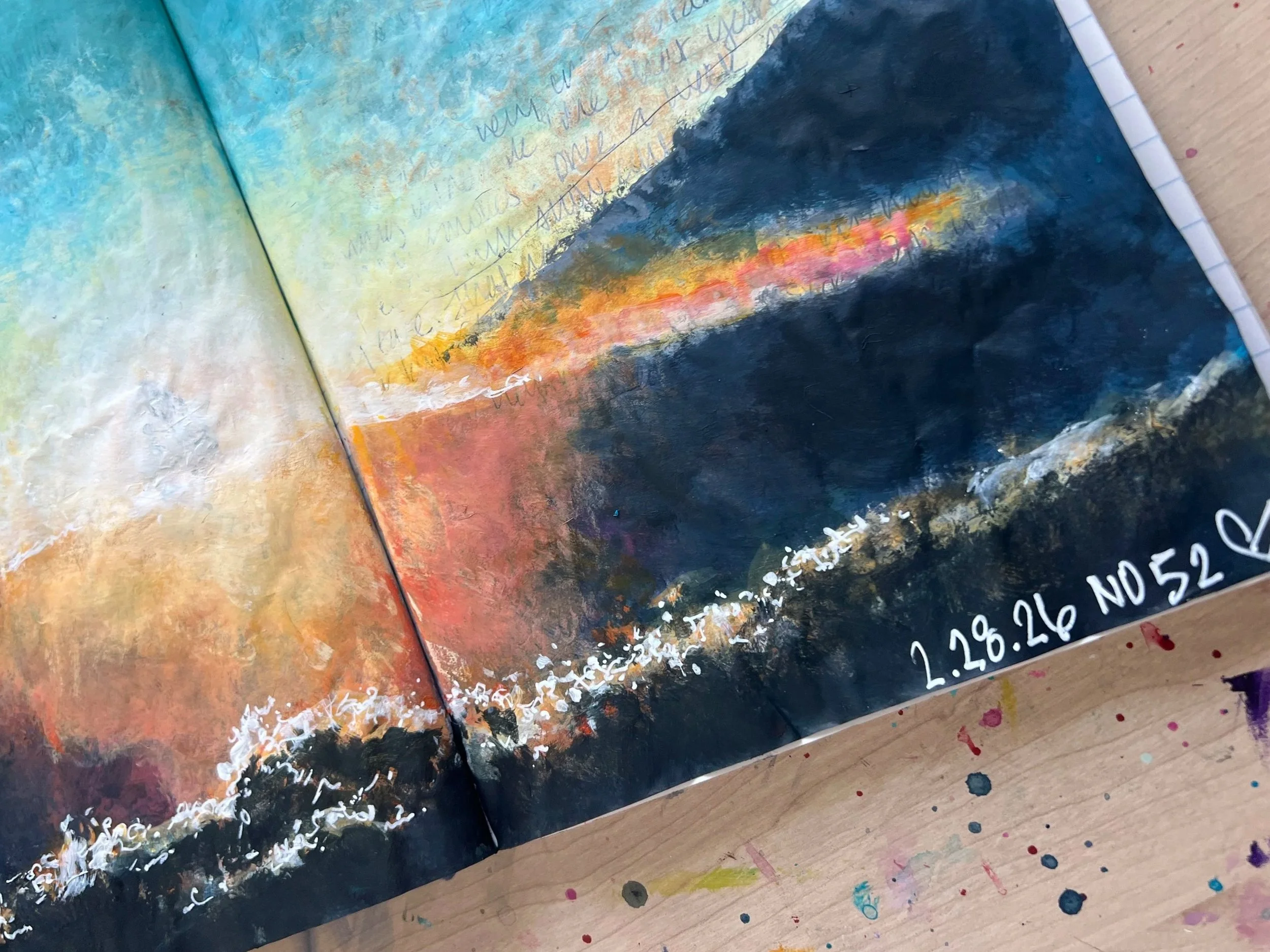 Most of the work begins in my art journal. Layers over writing. Color over thought. The pages become a record of where I am and how I’m moving through it.